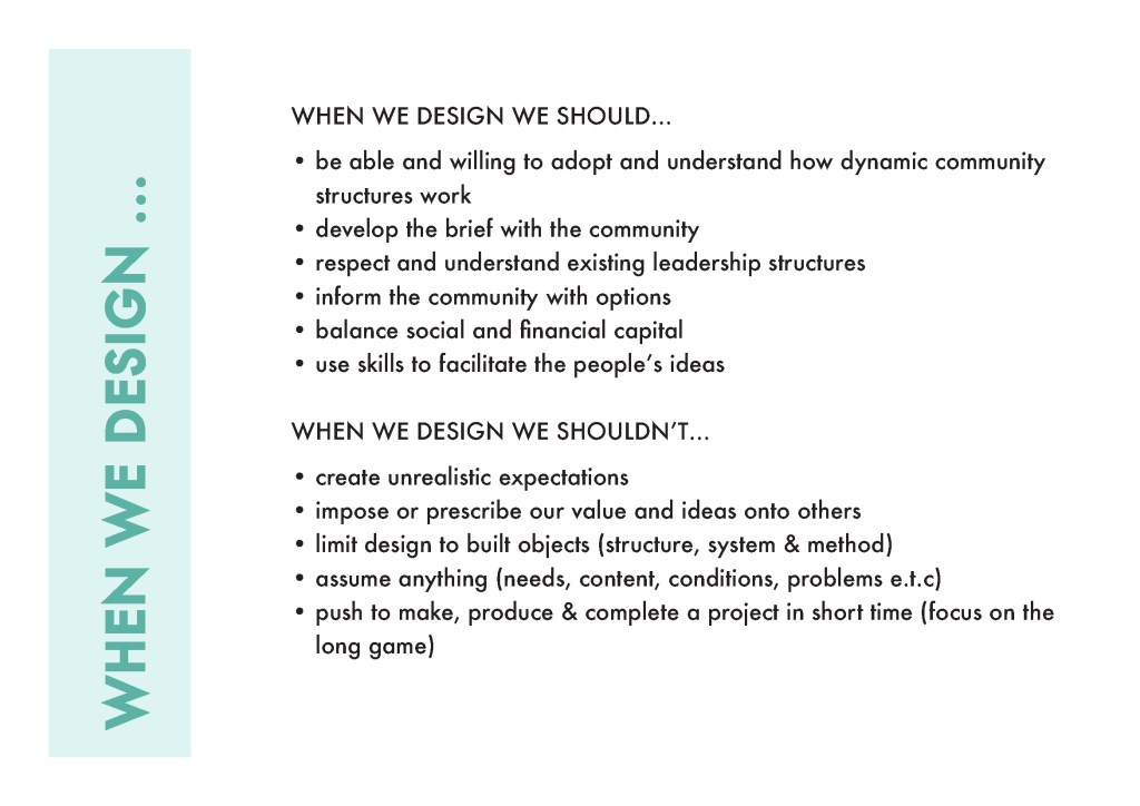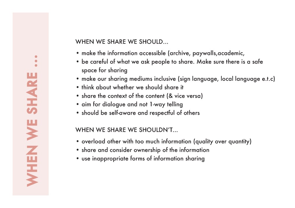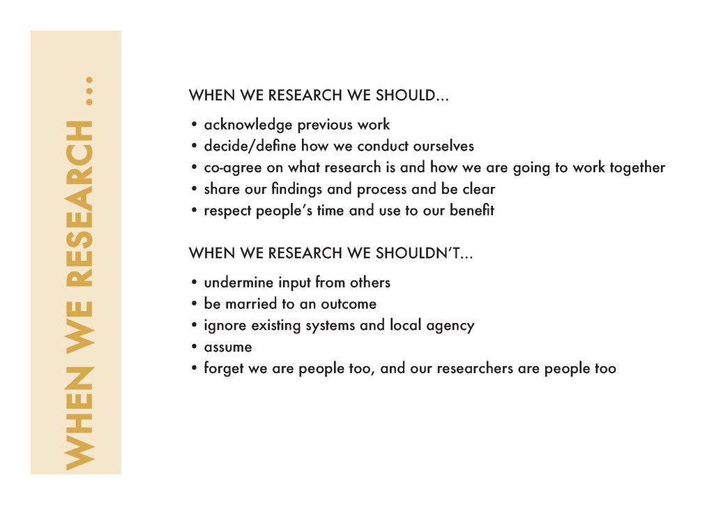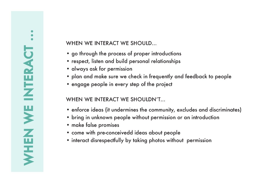 our praxis. We ha e collected and developed several layers of input around a ‘code of ethics’ or