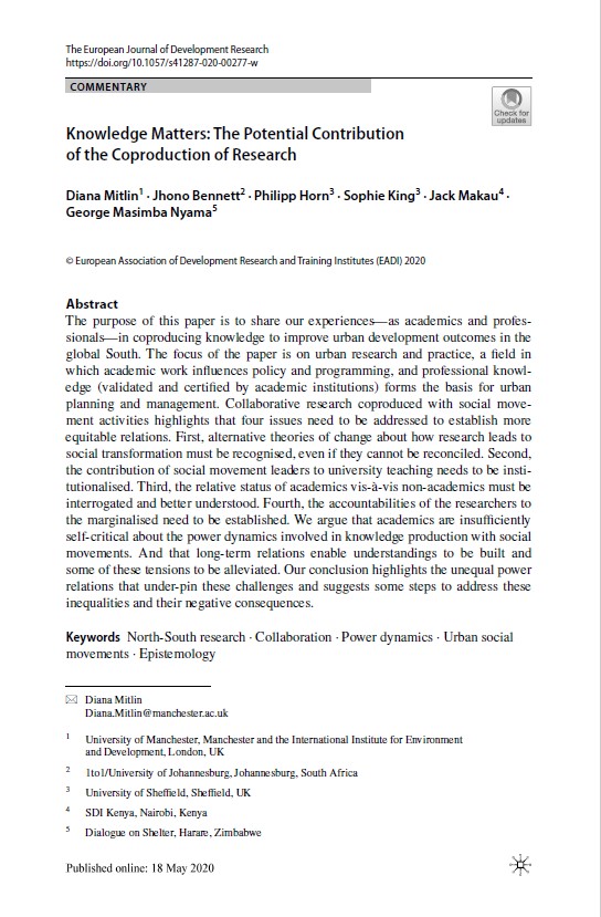 TOWARDS CITYWIDE PARTICIPATORY PLANNING: EMERGING COMMUNITY-LED PRACTICES IN THREE AFRICAN CITIES